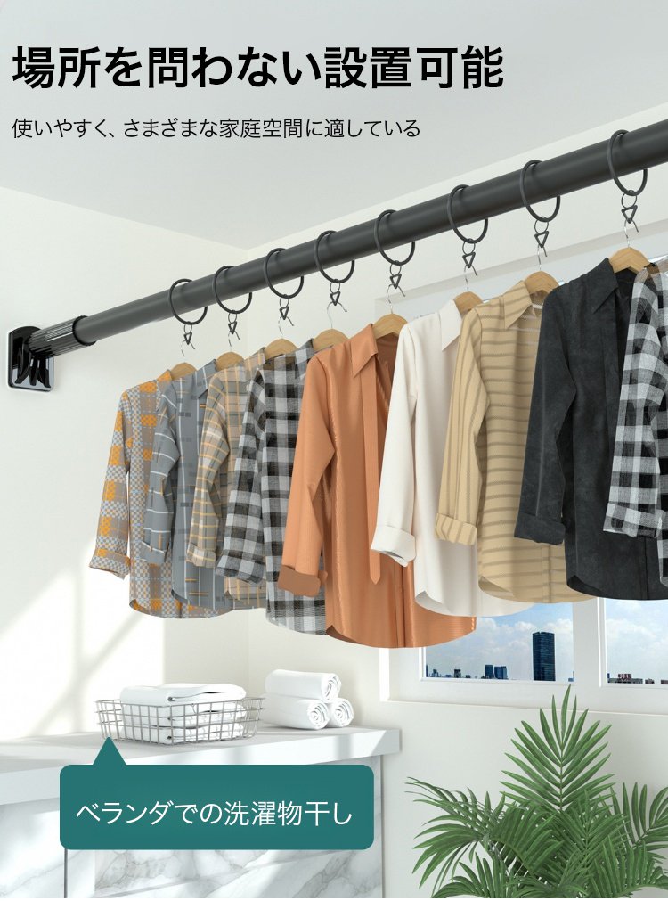 穴開け不要ステンレス製伸縮式物干し竿